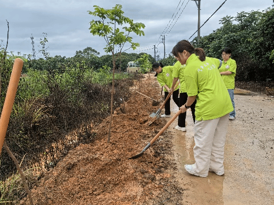 工作队为绿美点石项目进行植树,并考察生态公园。
