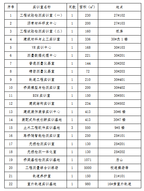 英国威廉希尔公司实训基地是公司投资近4000万建设的集教学、科研、培训、对外服务等多功能为一体的校内实训基地。实训基地由工程检测实训基地(包含工程试验检测实训室、建筑材料与土工实训室、土木工程桥梁模型与检测实训室、桥梁基桩检测实训基地、沥青实训室)、工程测量实训基地(包含测量数据处理中心、精密仪器室、普通仪器室)、土木工程软件实训基地、建筑工程技术与管理实训基地(包含BIM实训室、建筑装饰装修实训室、VR实训中心)、轨道交通工程技术实训基地(包含轨道交通技能训练中心、轨道养护室、室外轨道实训基地)组成,总面积近9000m2。